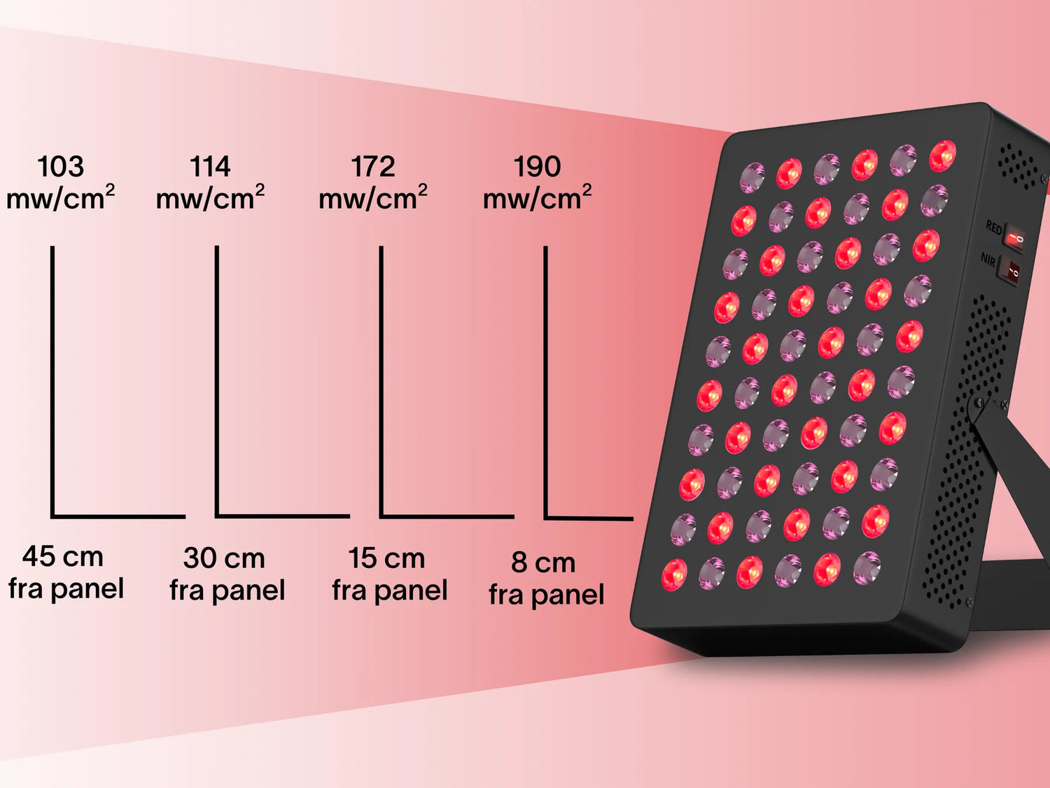 - a) 8 cm fra panel: 190 mw/cm2