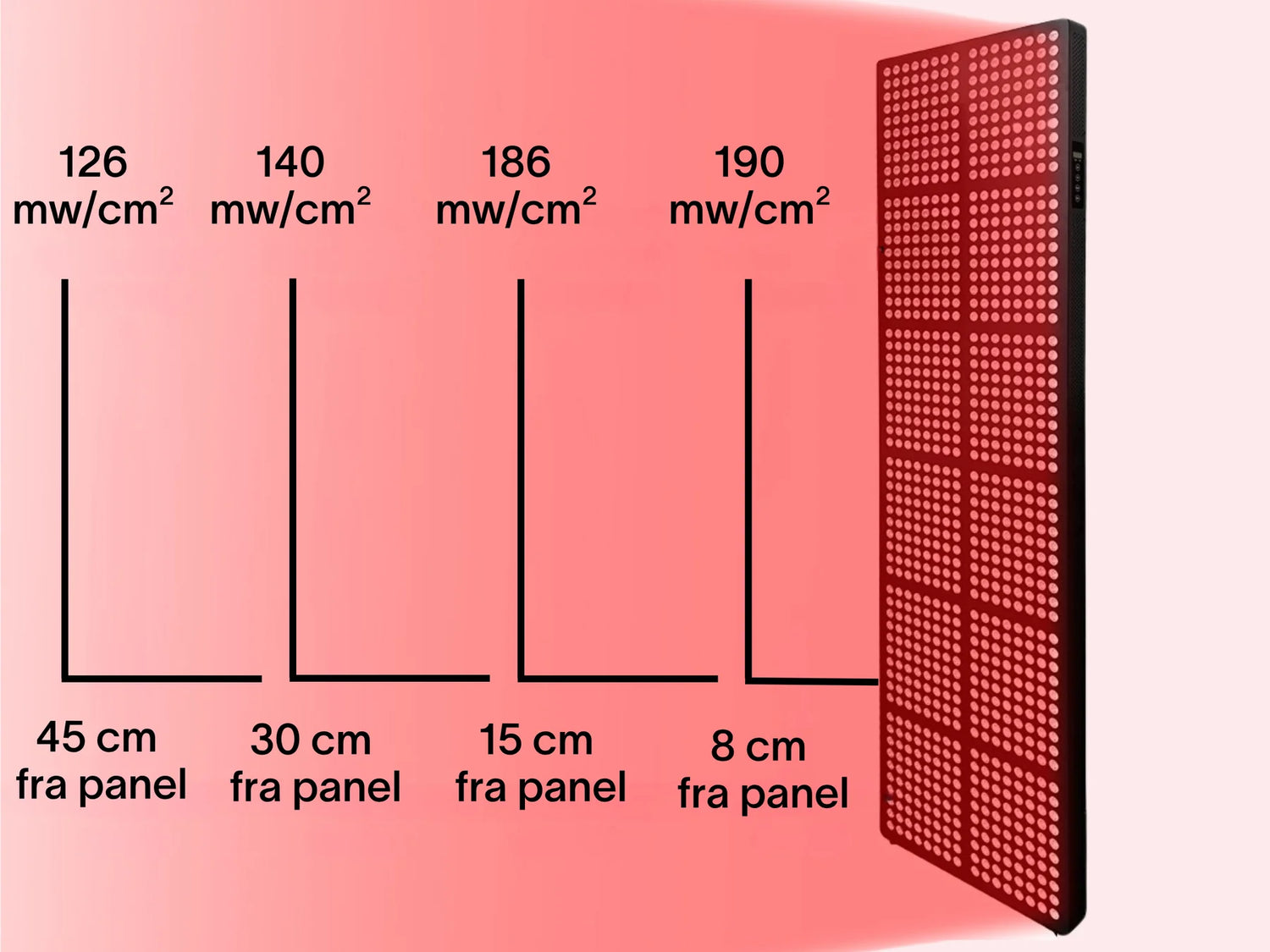 - a) 8 cm fra panel: 190 mw/cm2